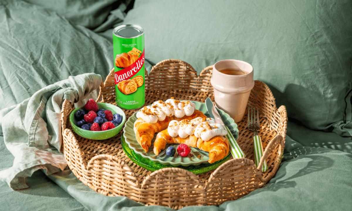 - Pop het blik open en rol de croissants volgens de aanwijzingen op de verpakking. Klop het ei los en bestrijk de croissants hiermee. Bak de in ca 12-15 minuten af in de oven.