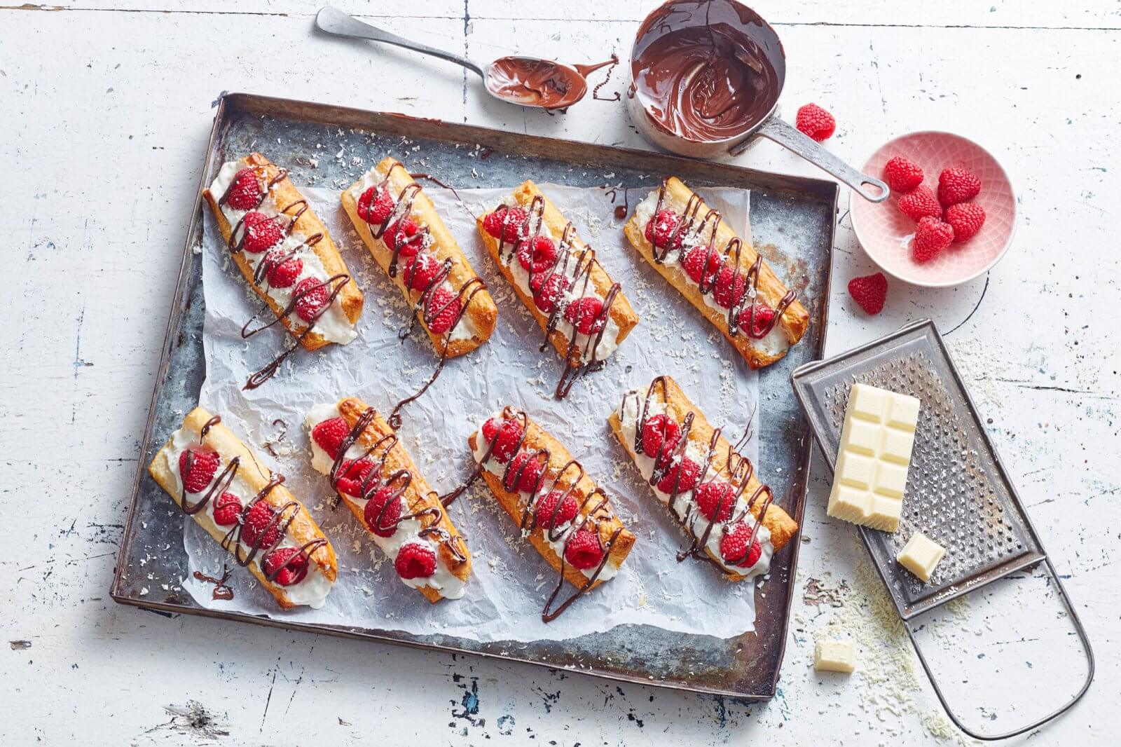 Éclairs au chocolat blanc avec framboises