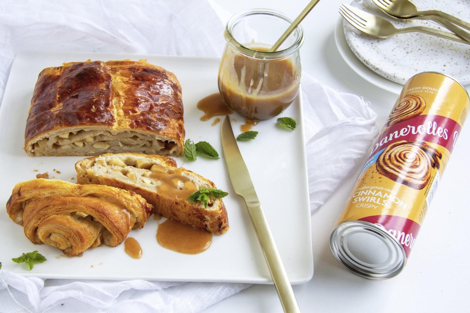 Mmmm, caramel au beurre salé. Dat klinkt lekker! Maar weet je wat nog lekkerder klinkt? Caramel au beurre salé samen met het kant-en-klare verse deeg van Danerolles. De combinatie van het zoete deeg van Danerolles en de zoutere smaak van de caramel au beurre salé maakt het een heerlijk recept voor het dessert of bij de koffie, voor kerst of pasen, of wanneer je eens lekker je mama wilt verwennen. En weet je wat dit appelrol caramel au beurre salé recept nog beter maakt, met een uurtje ben je al klaar en kan je gaan smullen! Enjoy!